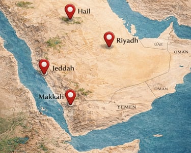 استقبال ضيوف الرحمن في ٤ نقاط تجمع في مدن مختلفة. ( الرياض ، حائل ، جدة ، مكة )